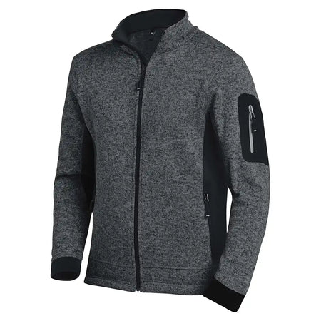 FHB CHRISTOPH Strick-Fleece-Jacke Herren, körpernahe Passform, elastische, schwarze Seitenbereiche aus 100% Polyester, 2 geräumige, vordere Reißverschlussseitentaschen und eine großzügige Armtasche mit Reißverschluss, 2 offene Innentaschen, YKK-Frontreißverschluss