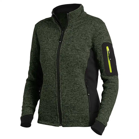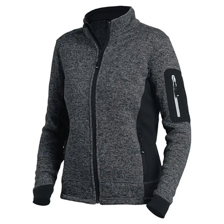 FHB Marieke Strick-Fleece-Jacke Damen, körpernahe Passform, elastische, schwarze Seitenbereiche aus 100% Polyester, 2 geräumige, vordere Reißverschlussseitentaschen und eine großzügige Armtasche mit Reißverschluss, 2 offene Innentaschen, YKK-Frontreißverschluss