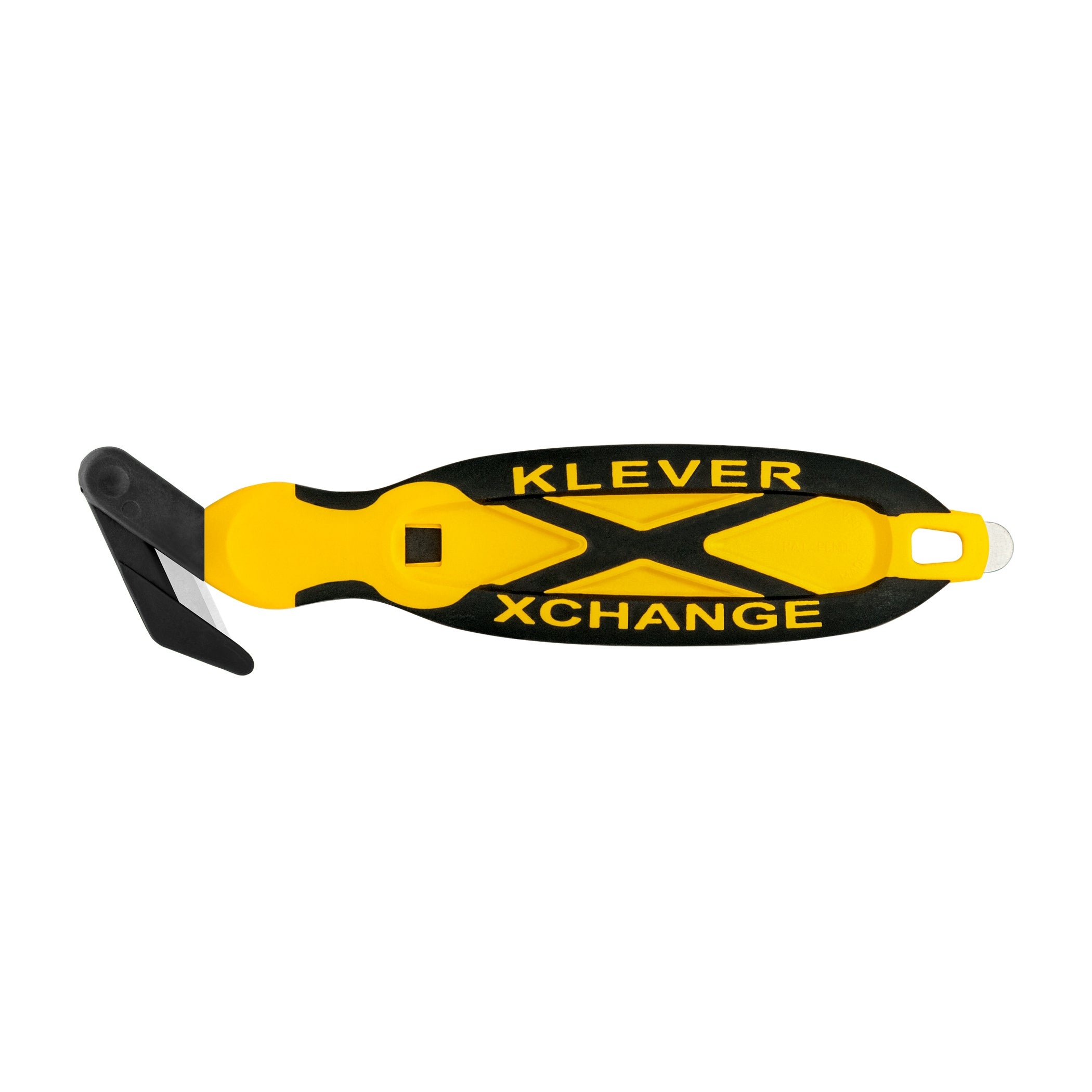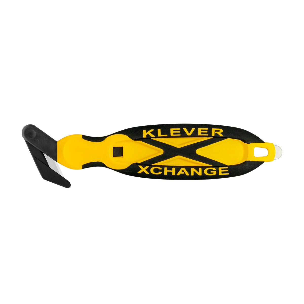 Du suchst höchste Sicherheit, möchtest aber auf Komfort nicht verzichten? Das Sicherheitsmesser KLEVER XCHANGE bietet dir höchste Ergonomie: anatomisch geformter Griff, rutschhemmende Weichgummi-Komponenten, vielfältige Auflageflächen für deinen Daumen. Der Messergriff ist vielfach wiederverwendbar: “Keep the handle, replace the head!” Die Klingen liegen verdeckt und schützen Anwender sowie Material. Zudem sind die Klingenköpfe sehr einfach auswechselbar. Durch den breiteren Klingenzugang ist das KLEVER XCHANGE ideal geeignet für bis zu 2-wellige Wellpappe, Pappe, Umreifungsband, Klebeband, Schnur, Sackware, Filz, Textilien, etc. In verschiedenen Farben erhältlich. Mit integriertem Klebebandritzer und praktischer Öse. Auch mit anderen Klingenköpfen kombinierbar - ein echtes Multitalent!