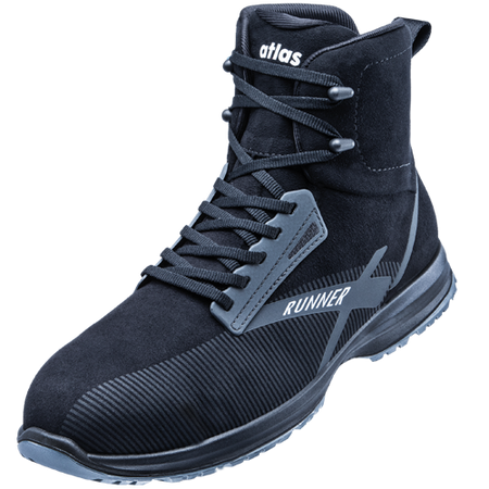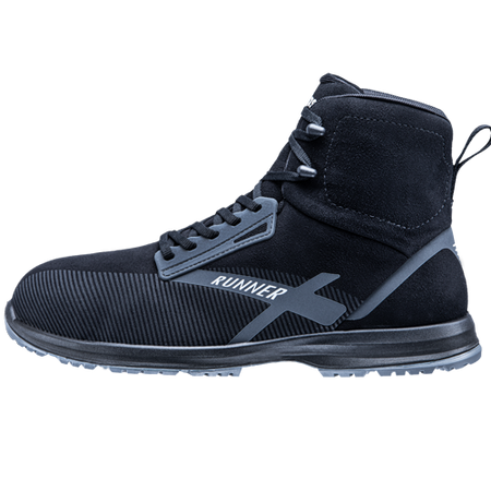 RUNNER 105 ESD - S3 - W10 - SRC, knöchelhoher Sicherheitsschuh, hydrophobiertes Mikrofaser-Obermaterial, SPORTY SOHLENSYSTEM, XP metallfreie Durchtritthemmung, Stahlkappe, aktiv-X Funktionsfutter, MPU-Rebound-System, clima-stream Konzept, geeignet für die Einlagenversorgung-DGUV 112-191