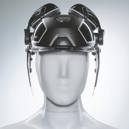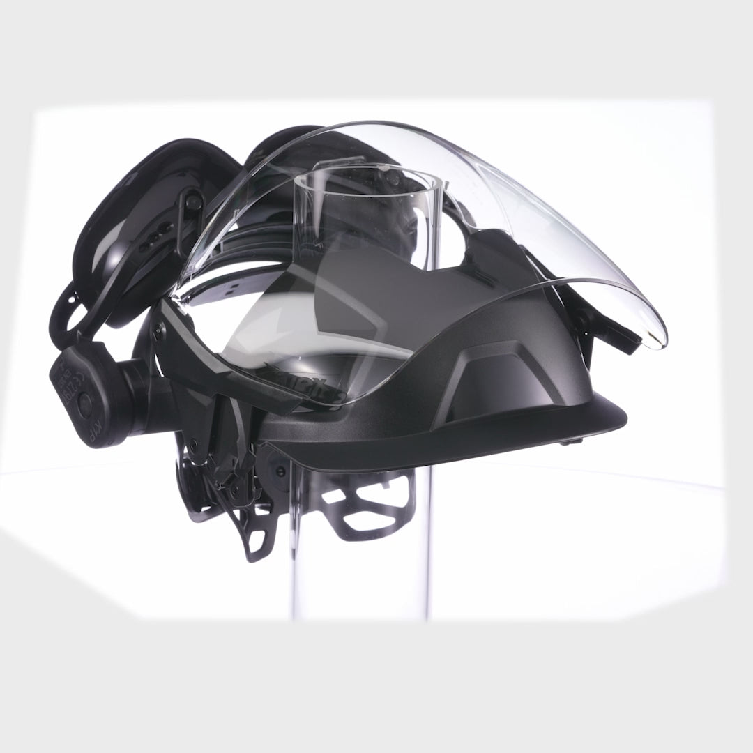 •komplett vormontiertes Gesichtsschutz Multisystem mit Polycarbonat Visier und